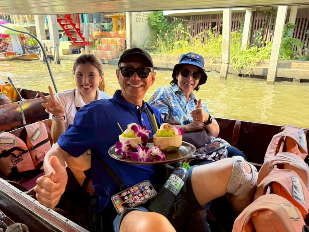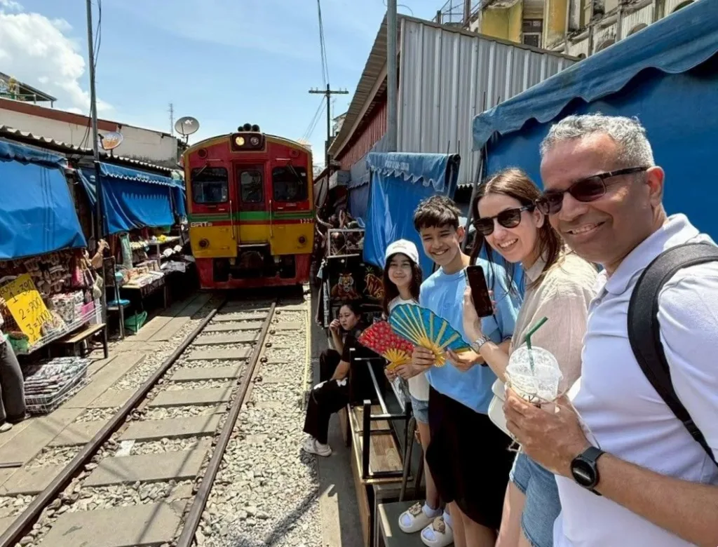 clear all stuff that will obstruct the coming train, visit the unseen Thailand, the ordination hall that is covered by the roots of the trees at Wat Bang Kung Temple. Enjoy your evening at Amphawa Floating Market, shopping, eating and taking the private long-tailed boat, absorbing the atmosphere along the canal. Amphawa Floating Market is most active on Friday to Sunday but on Monday to Friday, less shops open.