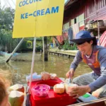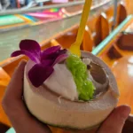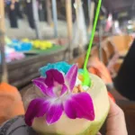 The train is coming!!! You will get excited when the train passes by you only one feet away. At the Maeklong Market, the price of souvenirs is reasonable. Don’t forget to try coconut juice there.